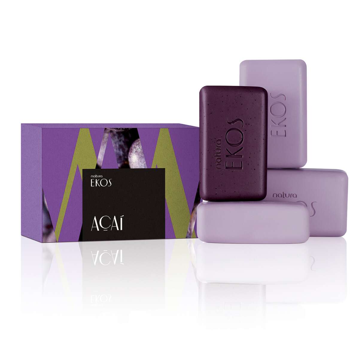 Os Sabonetes Natura Ekos proporcionam múltiplas sensações e amplo cuidado com você e a Amazônia. Em cada barra, óleo 100% vegetal puro da Amazônia e fórmulas biodegradáveis exclusivas que protegem, perfumam e limpam sem ressecar. Esta caixa de Sabonetes Ekos Açaí contém barra esfoliante que renova e perfuma a pele e barras cremosas que limpam sem agredir sua barreira de hidratação natural.